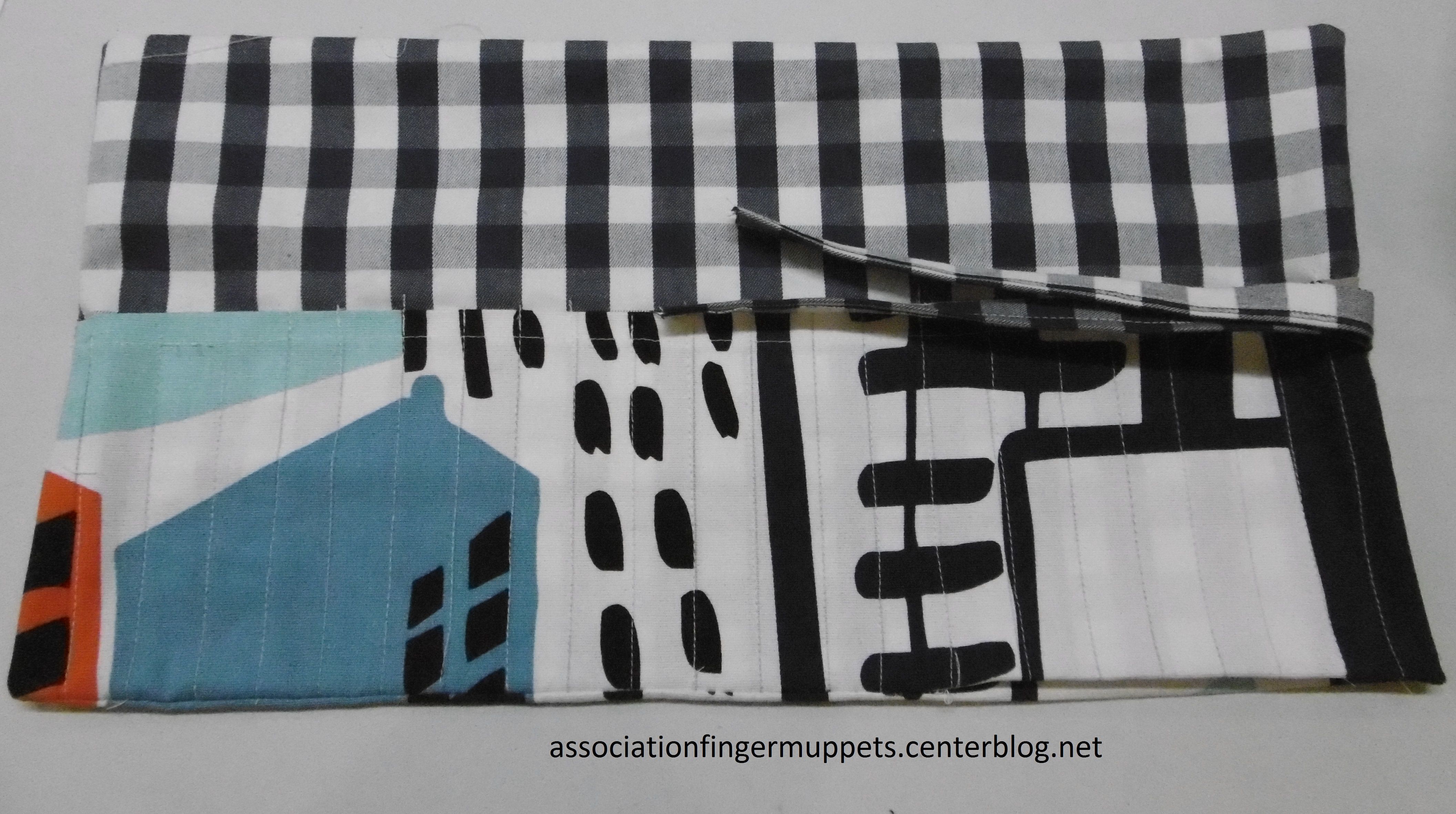 Carine a réalisé une trousse plate pour ranger des feutres. La trousse se roule et s'attache avec un lien.
